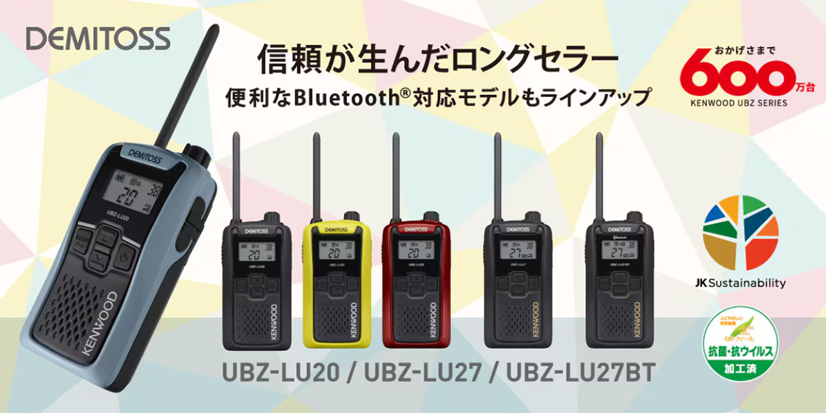 The new lineup of Demitoss Specific Low Power Transceivers on sale from late May 2025, including the UBZ-LU20, UBZ-LU27, and UBZ-LU27BT, features the following environmentally-friendly features.