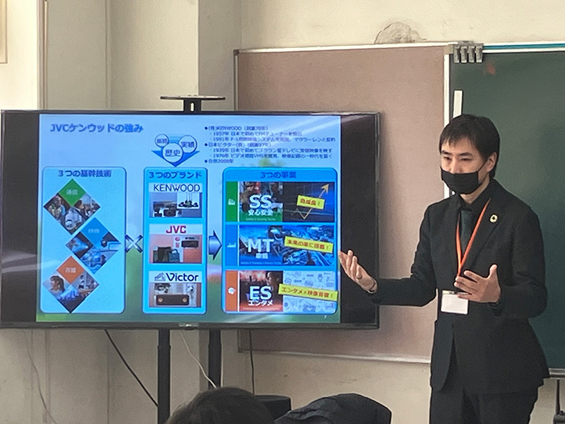 JVCKENWOOD delivered lessons at Yokohama Municipal Higashi High School ("Yokohama Municipal Higashi High School Premium Program") in December 2024. In these lessons, we gave presentations on social contribution and sustainability to first and second year high school students. This was our six time delivering these lessons, which we have continuously done from the perspective of regional co-creation. These presentations looked at the example of smart forestry using our communications systems to show how we are contributing to the achievement of a sustainable society, based on our corporate philosophy, "Creating excitement and peace of mind for the people of the world." We not only explained the link between business and sustainability in words, but also had students gain hands-on experience by taking in actual professional radio systems, tablets, and smartphones. In this way, we gained their understanding about how our communications systems play a role in protecting Japan's greenery.