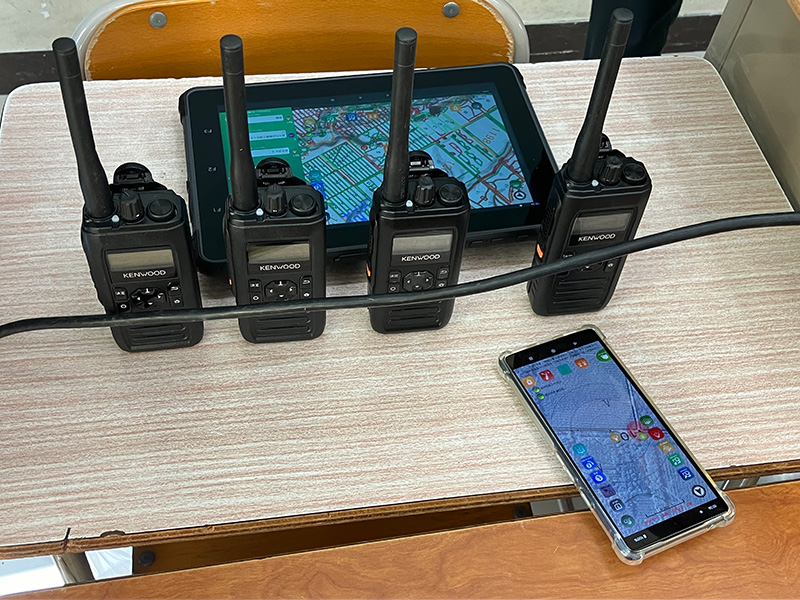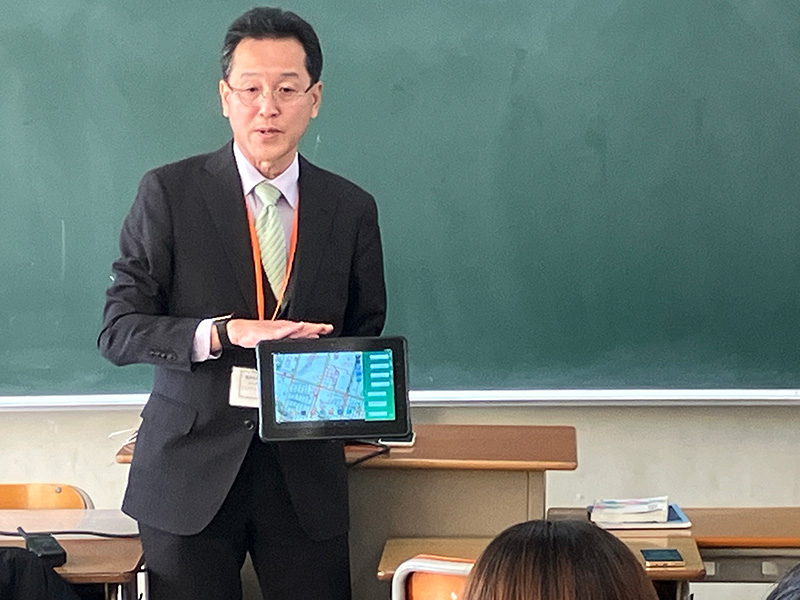 We gave two presentations, each lasting 30 minutes, with approximately 15 students attending each presentation. These presentations looked at the example of smart forestry using our communications systems to show how we are contributing to the achievement of a sustainable society, based on our corporate philosophy, "Creating excitement and peace of mind for the people of the world." We not only explained the link between business and sustainability in words, but also had students gain hands-on experience by taking in actual professional radio systems, tablets, and smartphones. In this way, we gained their understanding about how our communications systems play a role in protecting Japan's greenery.
