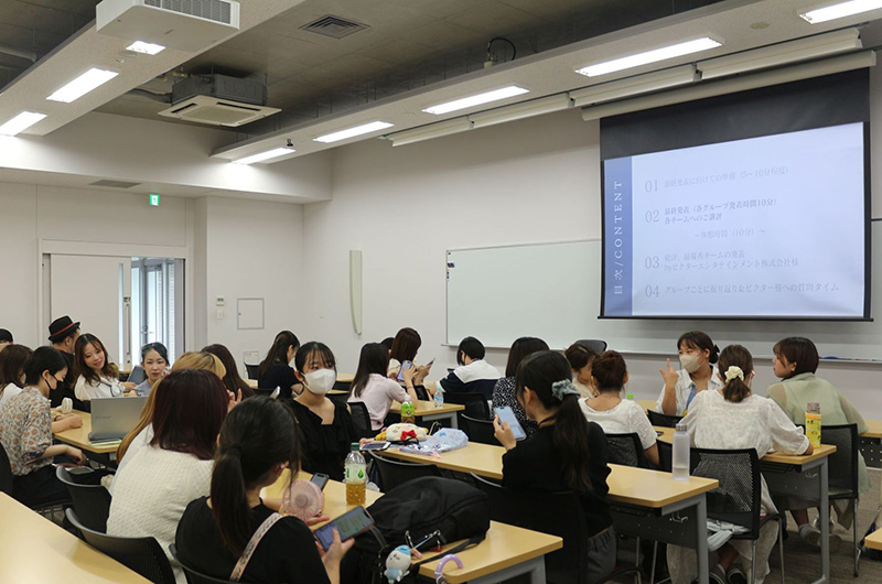 In August 2024, Victor Entertainment held the J Mission career support program for freshmen and sophomores at Jissen Women's University. J Mission is a joint industry-academia program bringing together Jissen Women's University, companies, and local governments. The workshop theme was "Design and present official merchandise for "YANG SKINNY," a four-piece guitar rock band from Tokyo with an average age of 22 which sing about how everyday life is filled with lies and contradictions," and it attracted around 30 student participants. Office tours were also held for students who requested them. JVCKENWOOD will continue to contribute to local communities through collaboration with educational institutions, companies, organizations, and events.