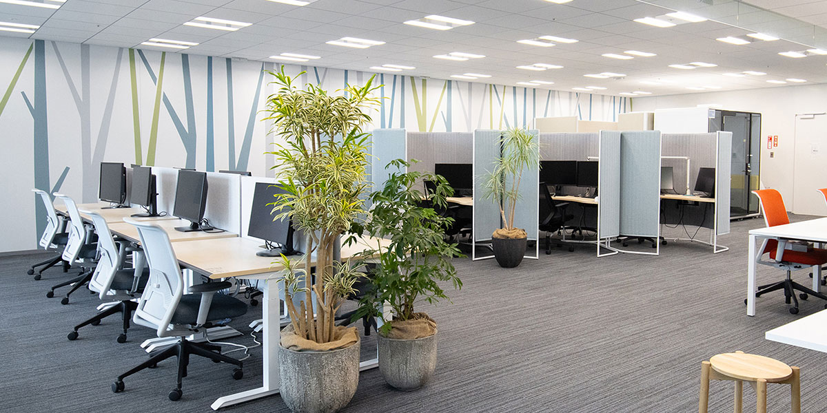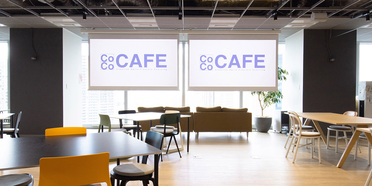 自然の映像が流れるモニターや植栽などの内装にKooNeの音がマッチして、快適な空間作りの一助になっています。また、導入直後は鳥のさえずりに驚きがあったようですが、今は完全に溶け込んでおり、集中が途切れた時にふと自然音に気付くという声も上がっています。以前より周囲の音を気にせず過ごせるためコミュニケーションが取りやすくなり『CoCo-CAFE』としてより良い環境になってきたと感じています。