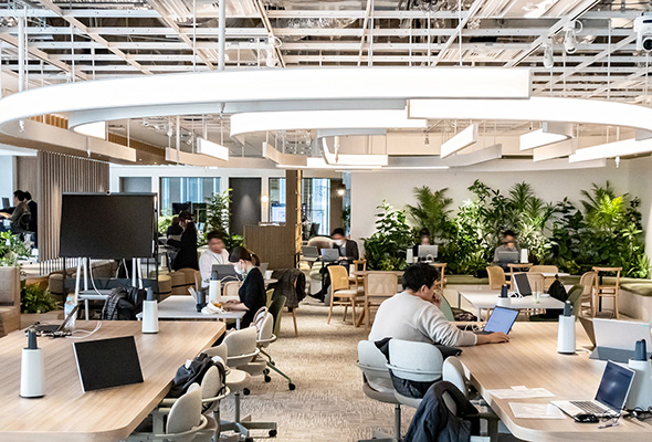 KooNeによる川のせせらぎや鳥のさえずりが流れる空間は、来訪者の緊張をやわらげ、自然と会話が生まれやすい雰囲気をつくり出しています。無音の空間と比べて場の“重たさ”がやわらぎ、訪れた瞬間から居心地のよさを感じられる環境となりました。こうした体験型の商談環境により、小売企業との議論はより活発になり、LICは売り場づくりをともに考える共創拠点として高い稼働率で活用されています。KooNeの自然音は、来訪者がリラックスした状態で思考を広げ、新たな売り場提案やアイデアが生まれる空間づくりを静かに支えています。