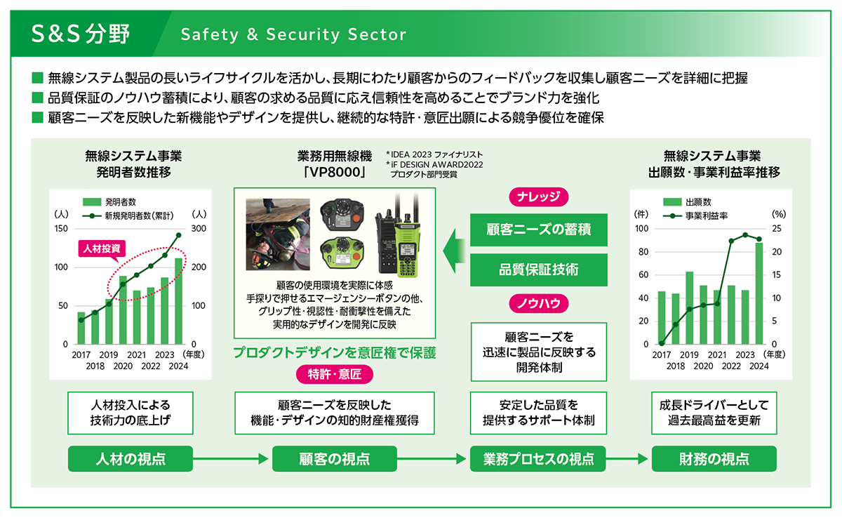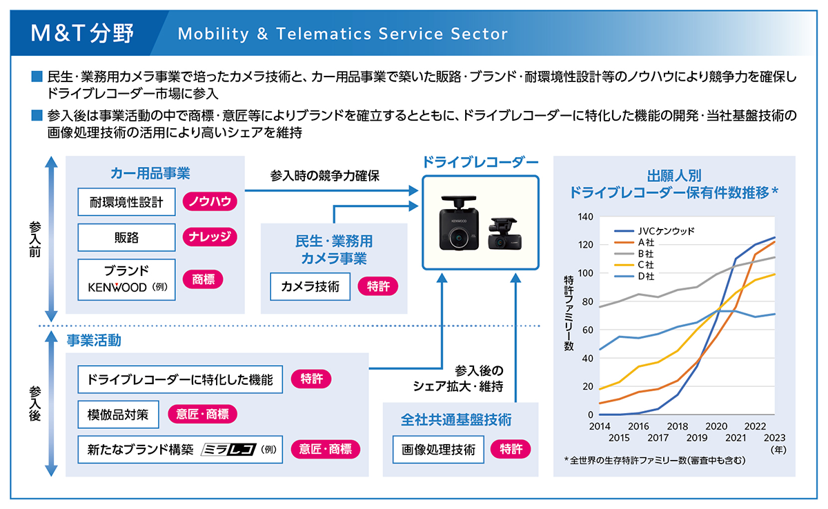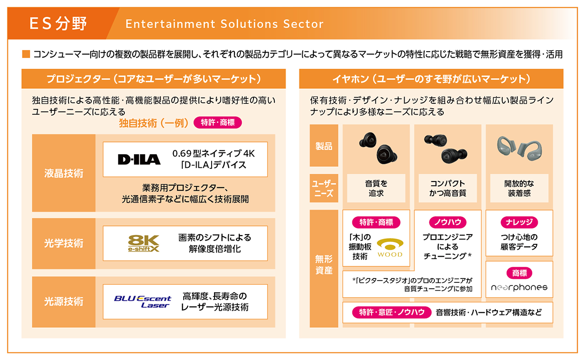 当社の3つの事業分野は、事業の特性がそれぞれ大きく異なり、その中で知的財産・無形資産が果たす役割も異なります。そのため、各事業分野で異なるアプローチにて知的財産・無形資産の獲得・活用を推進し、事業収益の拡大につなげています。各事業分野における知的財産・無形資産の利活用について、以下に一例を示します。