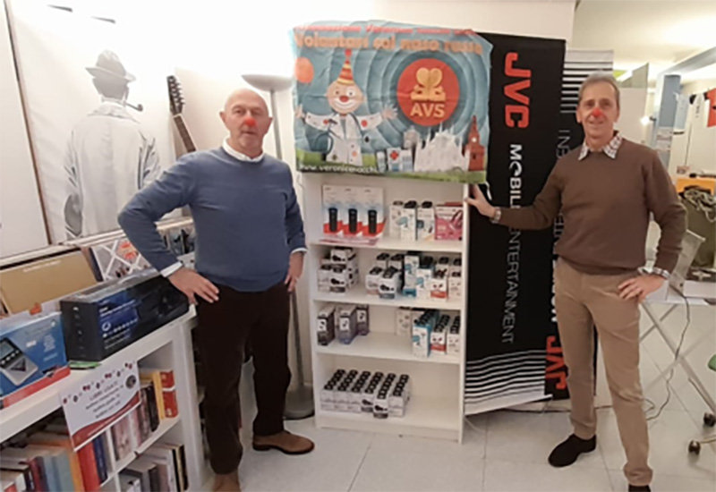 JVCKENWOOD Italia S.p.A.(イタリア)は、チャリティーバザーのため、AVS(ベロニカサッキ協会)への製品寄付を実施しました。AVSは、病院、障がい者センター、老人ホーム、刑務所などで肉体的、精神的、感情的に苦痛のある状況下の人々に、安心や笑顔をもたらすことができるクラウンセラピーを継続的かつ無償で運営しています。参加したチャリティーバザーでの売上など個人的な寄付等は継続的な地域のクラウンセラピーの運営費に充てられます。